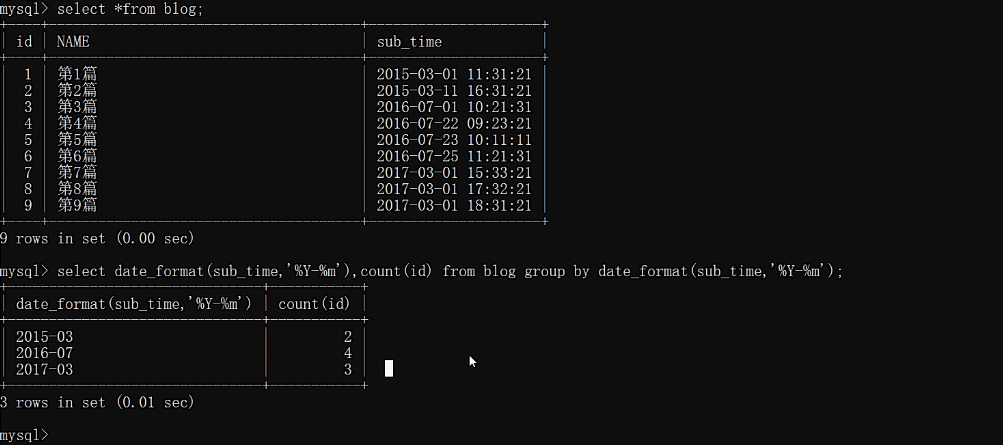 select count(id) from s1 where name='jason' and gender = 'male' and id > 3;