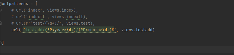 url('^testadd/(?P<year>\d+)/(?P<month>\d+)$', views.testadd, name='testadd') # name路由名字