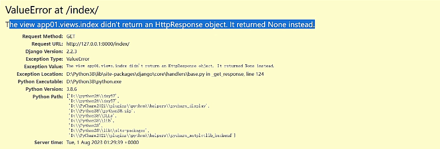 '''所有的视图函数不能够没有返回值,并且返回值还必须是HttpResponse对象'''