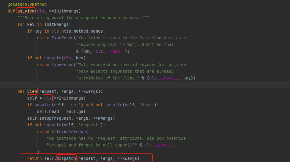 7. 最后返回了一个self.dispatch函数,其实就是在执行这个函数。