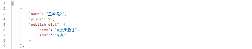 {"name":"新西游记111","price":199,"publish_id":{name:西安出版社,addr:西安},"authors":[{"name": "lqz","sex": "男","age": 19}]}