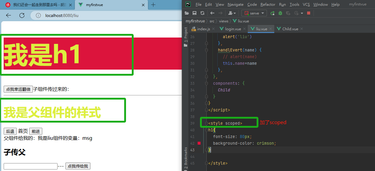 # 新建的组件 加了scoped,表示样式只在当前组件生效,如果不加,子组件都会使用这个样式