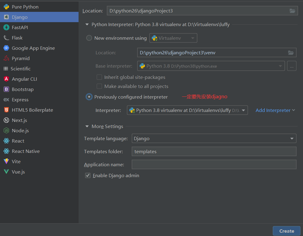 # 3 本地创建了虚拟环境,某个项目使用这个虚拟环境