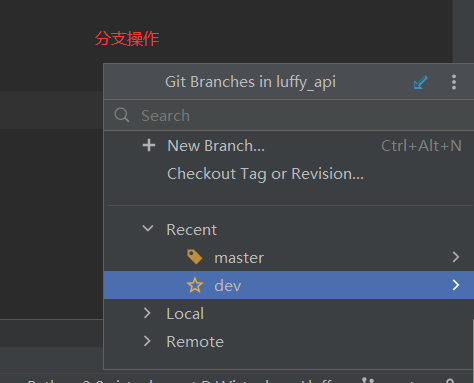 - 3 git branch 查看看不到,直接checkout 到dev分支就可以了