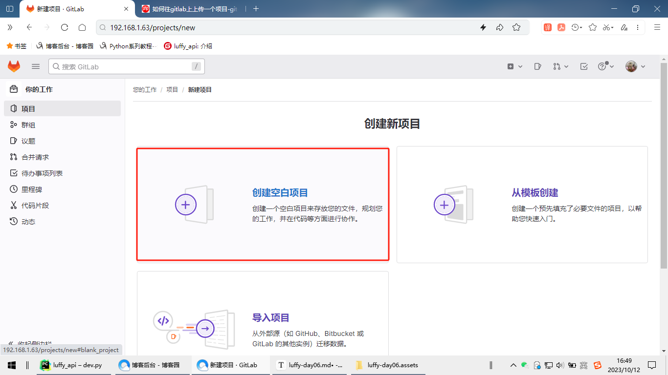现在你需要在本地电脑上创建一个新的Git仓库,以便将你的本地代码上传到GitLab上。