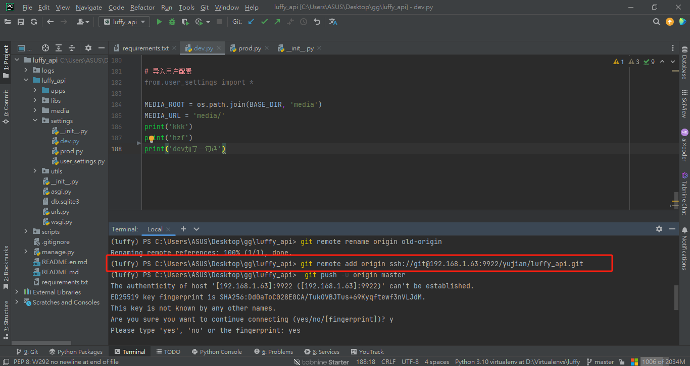 - 4 dev分支写代码,本地提交,推送到远端dev
