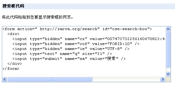 找到<form开头,以/form>结束的部分用google自定义搜索引擎的"搜索框代码"代替....