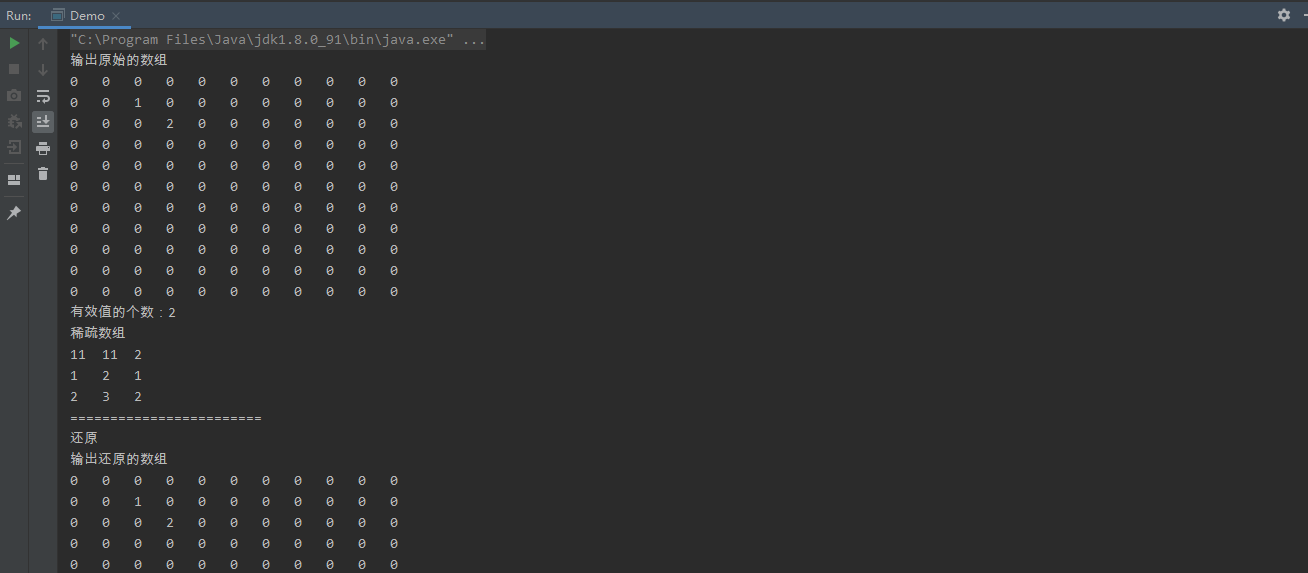 分析问题:因为该二维数组的很多值是默认值0,因此记录了很多没有意义的数据