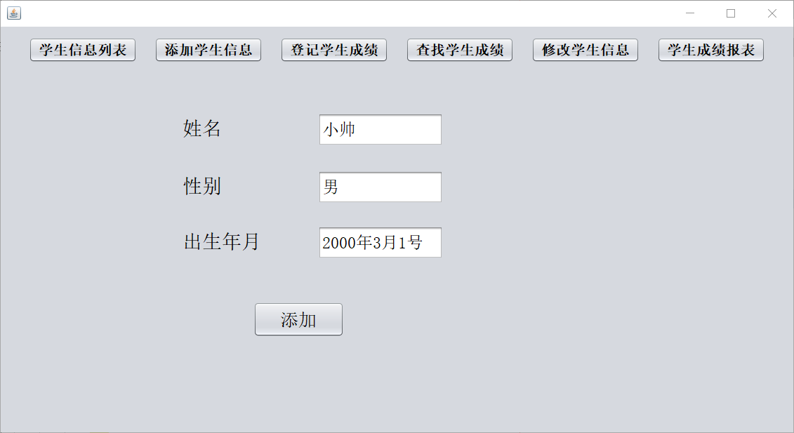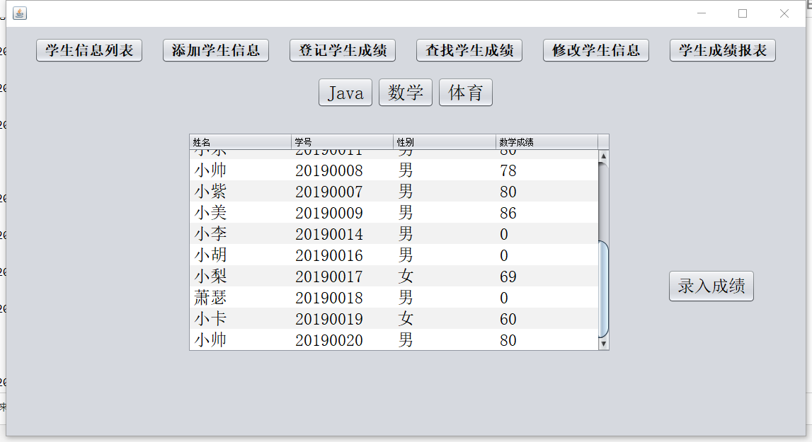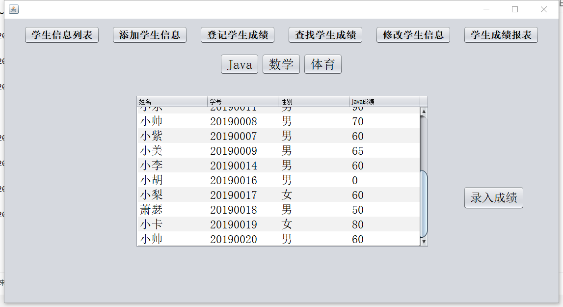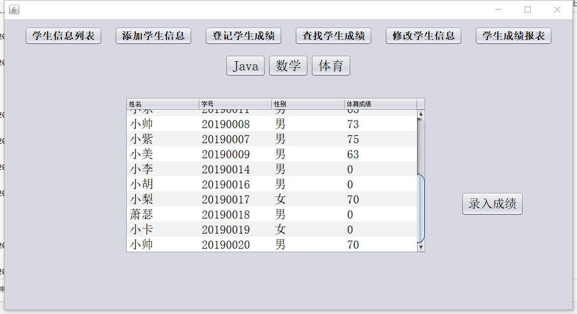 黄东(组长) 用户登录、GUI界面、添加学生功能、添加学生各科成绩、类的设计