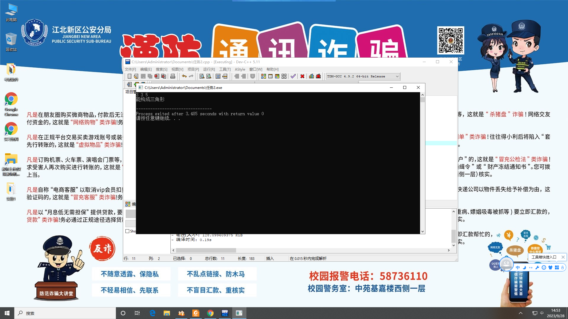 #include<stdio.h> int main() { float a,b,c; scanf("%f%f%f",&a,&b,&c); if(a+b>c&&a-b<c) printf("能构成三角形\n"); else printf("不能构成三角形\n"); return 0; }