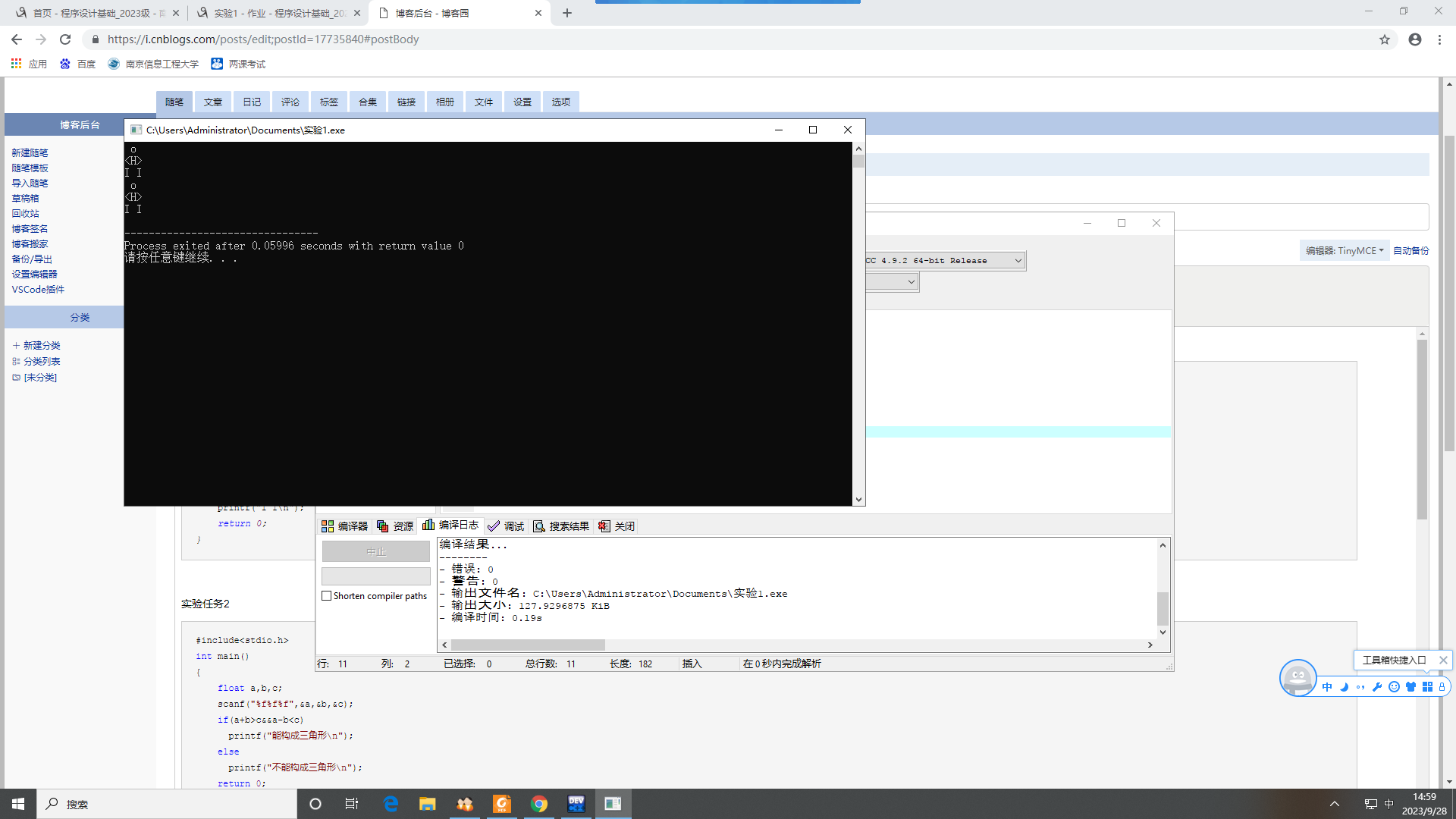 实验1 C语言输入输出和简单程序编写
