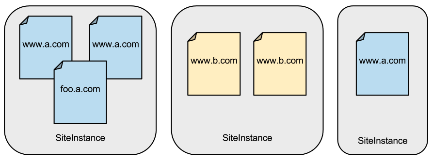 Note that a single tab might be navigated from one web site to another, and thus it may show different SiteInstances at different times. To support a site-per-process policy, a browser must be able to swap between renderer processes for these navigations.