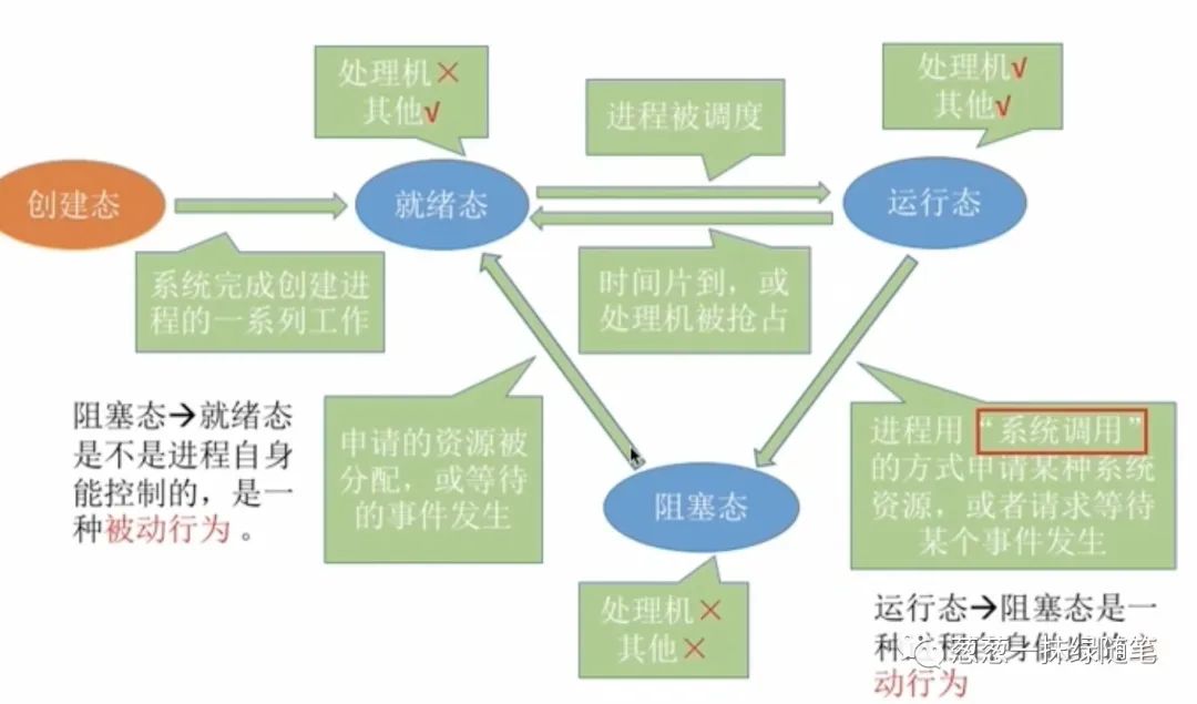 运⾏行行—>阻塞(等待)主动阻塞阻塞—>就绪 被动唤醒