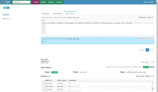 登陆kylin:http://<ip>:7070/kylin(User: ADMIN Pass: KYLIN)