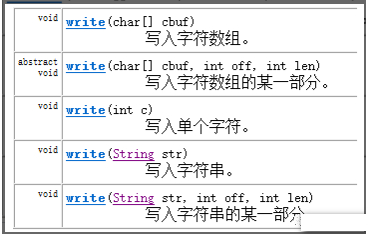 既然有专门用于读取字符的流对象,那么肯定也有写的字符流对象,查阅API,发现有一个Writer类,Writer是写入字符流的抽象类。其中描述了相应的写的动作。