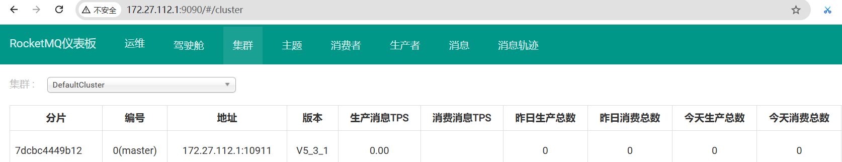 执行 docker-compose up -d命令启动服务,启动之后访问rocketmq-dashboard的9090端口