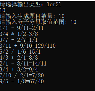 4)使用-n参数控制生成题目的个数,例如Myapp.exe -n 10,将生成10个题目