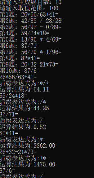 printf("后缀表达式为:");//附加