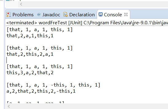 System.out.println(wordFre.diviWord("-a,that,a,this")+"\n-a,1,that,1,a,1,this,1\n");