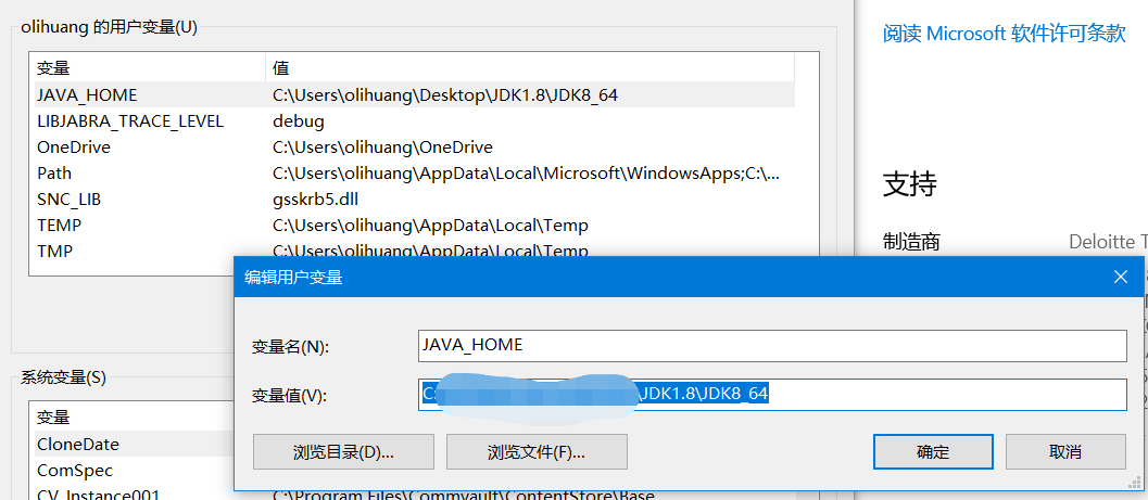 用户变量:JAVA_HOME (变量值为解压后JDK路径)