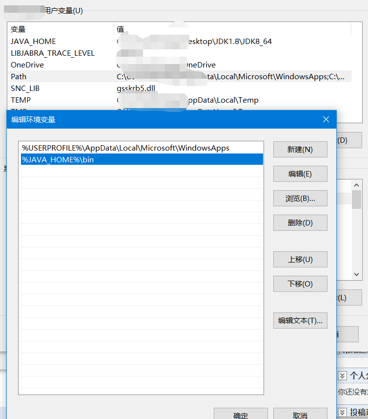 用户变量:Path(变量值为:%JAVA_HOME%\bin)
