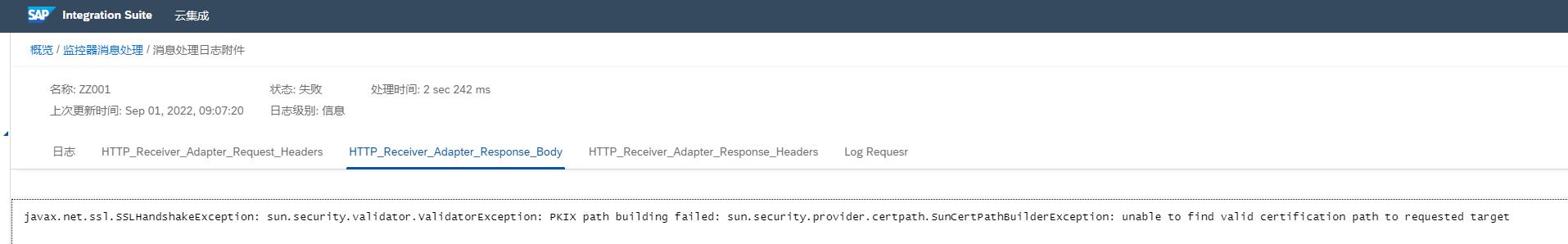 SAP->CPI 通过HTTPS发送请求时:接口消息报错未找到有效证书