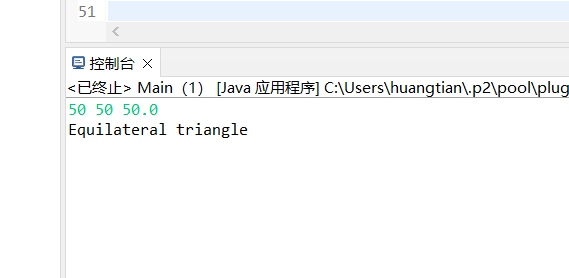 (3)如果输入数据合法且能够成等边三角形,则输出“Equilateral triangle”;