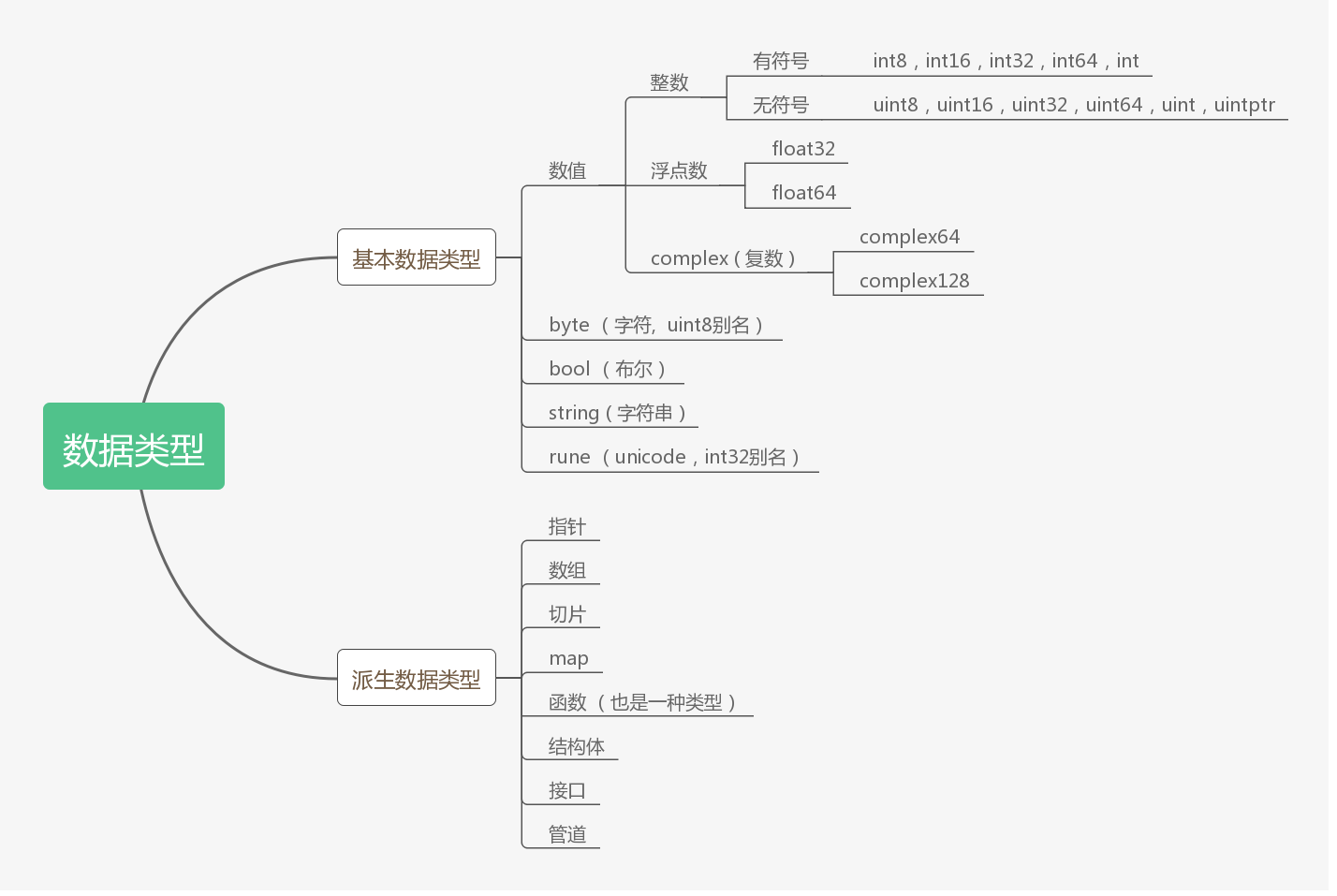 golang中的数据类型可以分为基础数据类型和派生数据类型