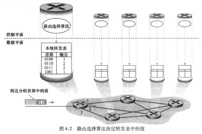 - 数据平面的主要作用:路由器从输入链路转发到输出链路