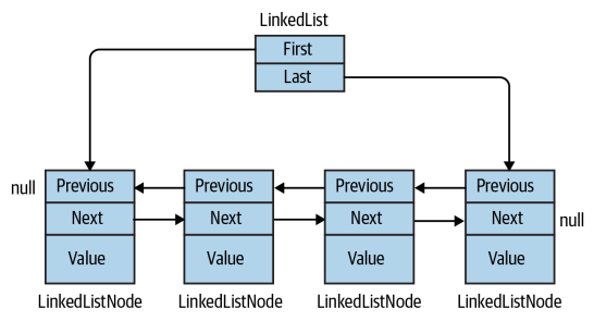 LinkedList<T>实现了IEnumerable<T>和ICollection<T>,但是没有实现IList<T>,因为链表没有索引