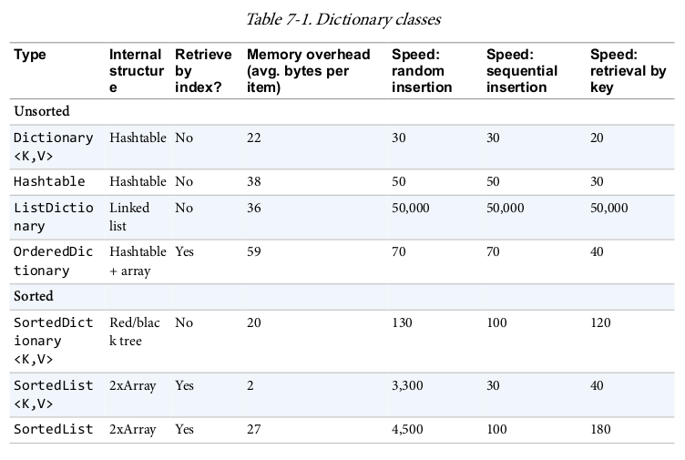Hashtable、Dictionary和OrderedDictionary - O(log n):