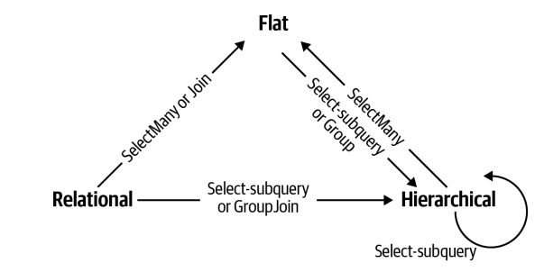 用 lambda 函数转换每个元素。Select 和 SelectMany 在EF Core中会执行inner joins、left outer joins、cross joins和non-equi joins。