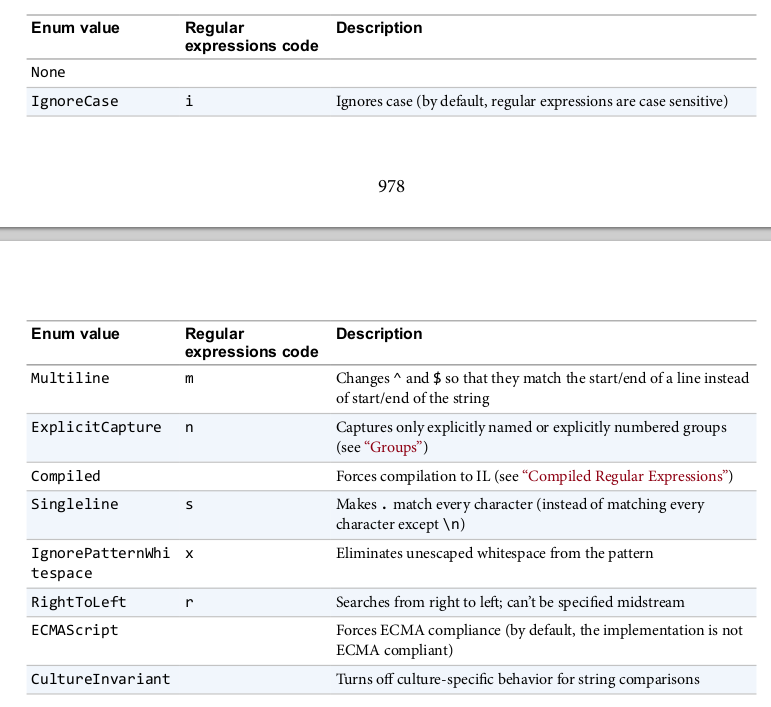 RegexOptions 标志枚举允许您调整匹配行为。RegexOptions 的一个常见用途是执行不区分大小写的搜索