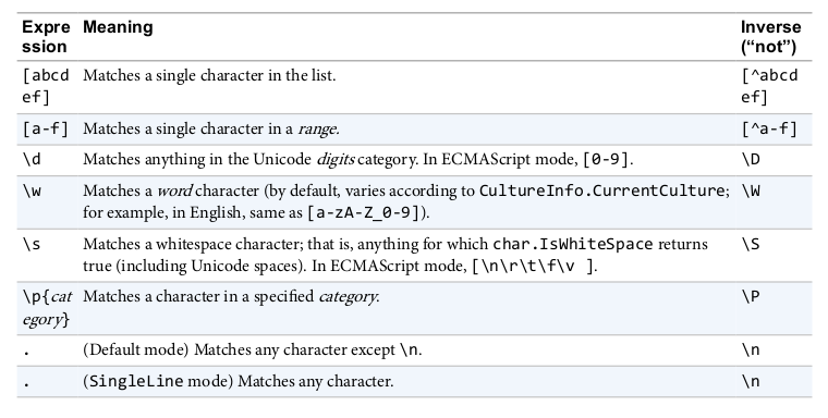 Console.WriteLine (Regex.Match ("what?", @"what\?")); // what? (correct)