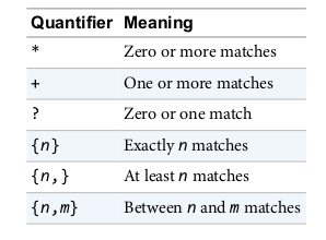 最常见的正则表达式运算符之一是量词。?是与前一项0或1次匹配的量词。换句话说?意味着可以选择。项目可以是单个字符,也可以是方括号中的复杂字符结构