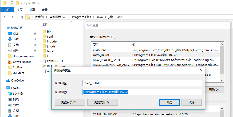 JAVA_HOME:变量值指的是实际的安装路径(比如我的路径为:C:\Program Files\Java\jdk-10.0.2)