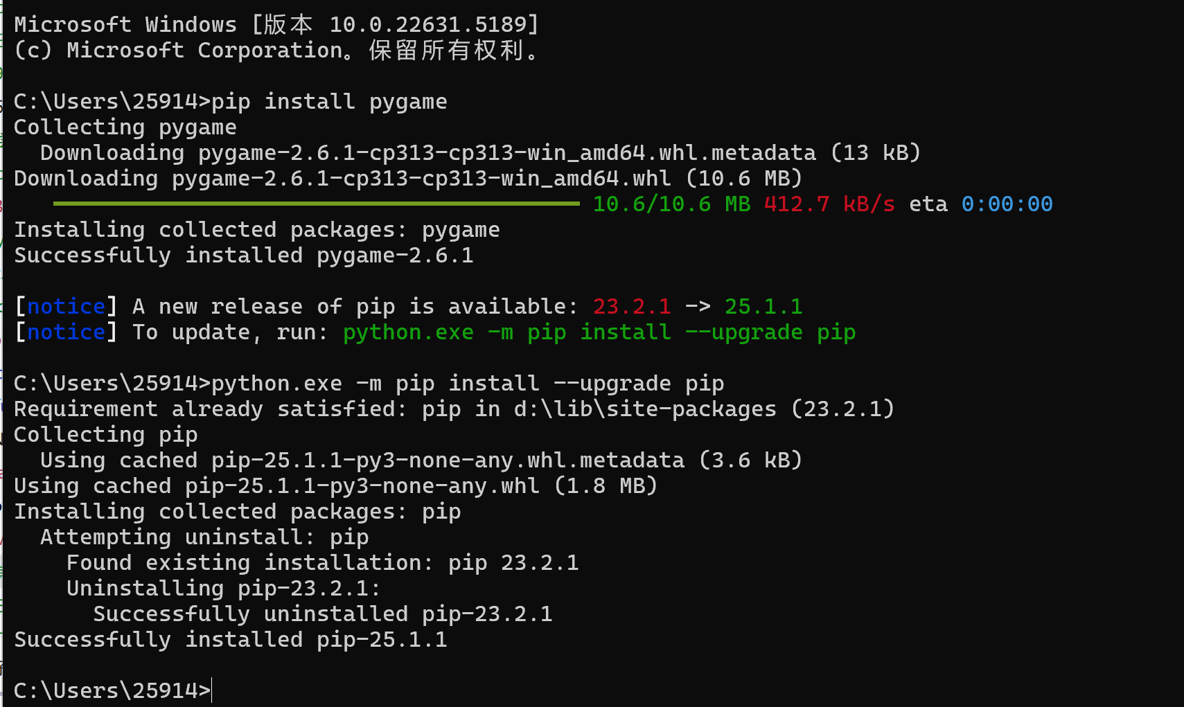 使用Pygame库前要先下载