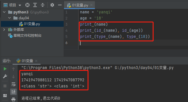 name = 'yanqi' print (name) # 1、变量三大组成部分 # 1)、变量名 =》是指向等号右侧值的内存地址,用来访问等号右侧的值 # 2)、赋值符号:将变量值的内存地址绑定给变量名 # 3)、变量值:代表记录的事物的状态