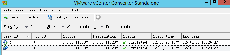 小结:在迁移完成后,会自动做一次同步,同步数据是迁移过程中,源物理机变更的数据。 第一次自动同步后 VMware vCenter Converter 就不会自动进行多次同步。如迁移完成后物理机还未正式关闭,虚拟机未正式启动这段时间,物理机发生的数据变更,只能通过手工执行同步到虚拟机。