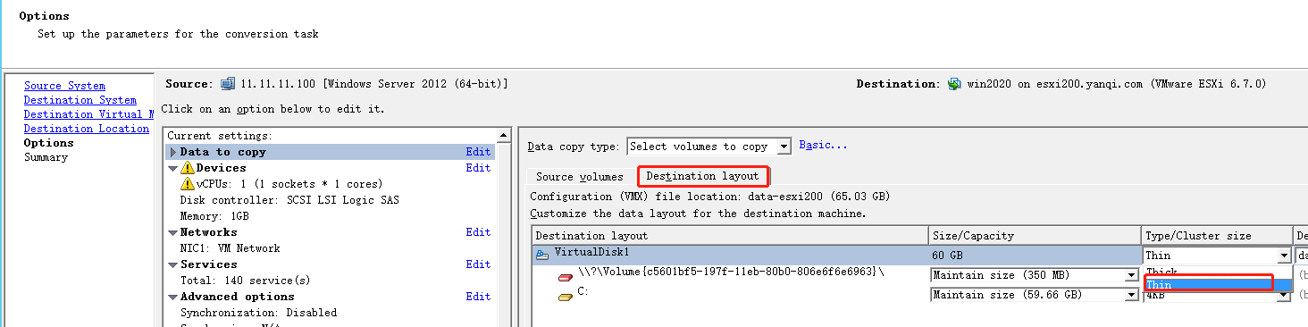 解决:将Converter Standalone安装在源Windows虚拟机,勾选Local installation模式,迁移时勾选This local machine。这样可以提高迁移的成功率。