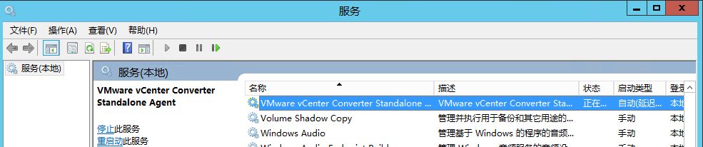 将位于 C:\Program Files (x86)\VMware\VMware vCenter Converter Standalone 的 Converter 代理安装程序 VMware-Converter-Agent.exe 从源计算机手动复制到远程计算机并安装 Converter 代理。并在服务里启动该服务。