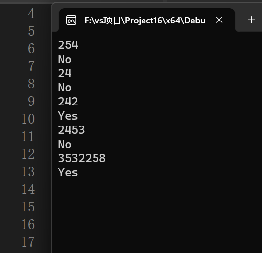 1 #include<stdio.h> 2 #include<string.h> 3 int func(char a[]); 4 5 int main() { 6 char num[100]; 7 while (gets_s(num) != NULL) 8 { 9 if (func(num)) 10 printf("Yes\n"); 11 else 12 printf("No\n"); 13 } 14 return 0; 15 } 16 17 int func(char a[]) { 18 int i, j; 19 for (i = 0; a[i] != '\0'; i++) 20 { 21 for (j = i + 1; a[j] != '\0'; j++) 22 { 23 if (a[i] == a[j]) 24 return 1; 25 } 26 } 27 return 0; 28 }