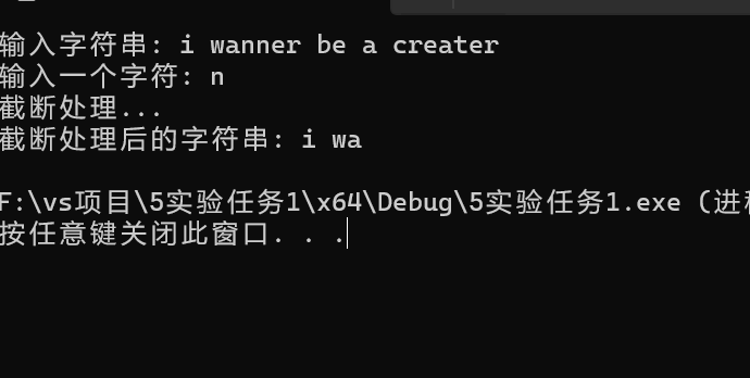 1 #include <stdio.h> 2 #define N 80 3 void str_trunc(char* str, char x); 4 int main() { 5 char str[N]; 6 char ch; 7 printf("输入字符串: "); 8 gets_s(str); 9 printf("输入一个字符: "); 10 ch = getchar(); 11 printf("截断处理...\n"); 12 str_trunc(str, ch); 13 printf("截断处理后的字符串: %s\n", str); 14 } 15 void str_trunc(char* str, char x) { 16 while (*str) { 17 if (*str == x) 18 *str = '\0'; // blank1 19 *str++;// blank2 20 } 21 // blank3 22 }