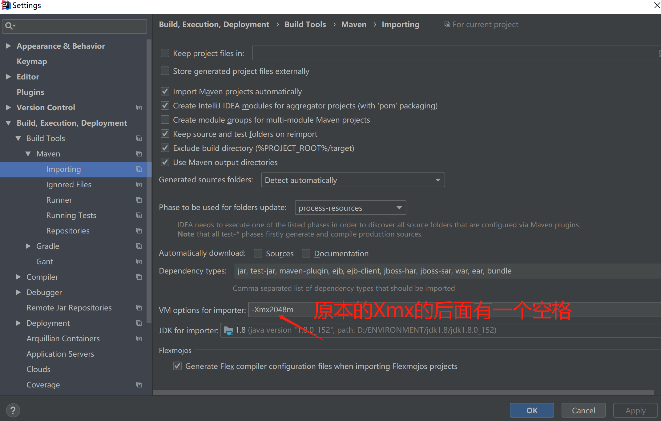 经过度娘上的多次尝试···发现一位老哥说···进入settings如下界面···将标识的位置中间的空格去掉即可···尝试了一下···居然好了! 感谢这位老哥