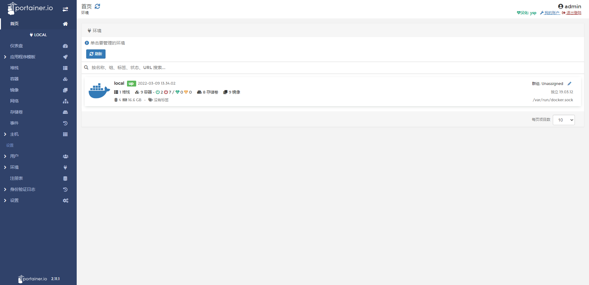方法2:使用portainer-ce,进行汉化