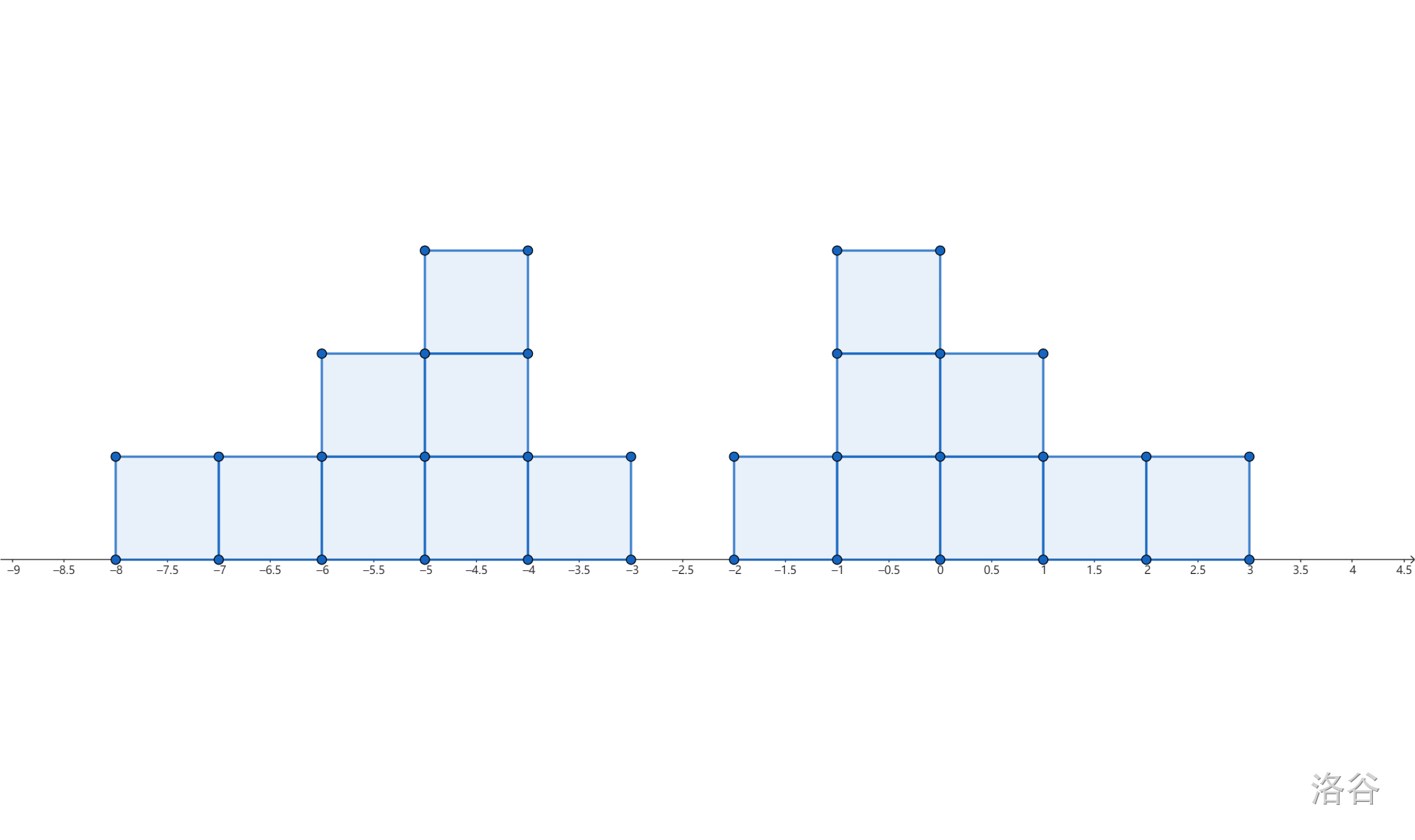 我们先统计每个实力值出现的次数,然后放到数轴上,然后我们就能得到: