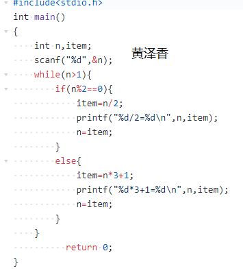 1.1日本数学家古角静夫研究自然数时,发现一个有趣现象:“如果是个偶数就除2,如果是奇数就乘以3加1”,经过有限个这样的处理步骤,最后一定能得到1. 任意输入一个自然数,给出得到结果1的运算过程。