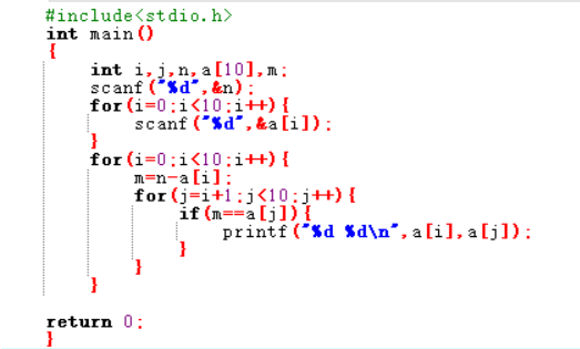 解法一:采用穷举法,从数组中任意取出两个数字,计算两者之和是否为给定的数字。