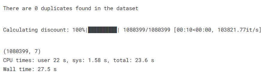 #处理商品信息数据集,计算商品折扣百分比,然后在显示进度