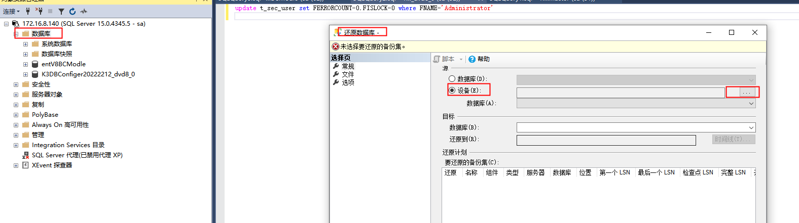 二、使用ssms工具还原数据库
